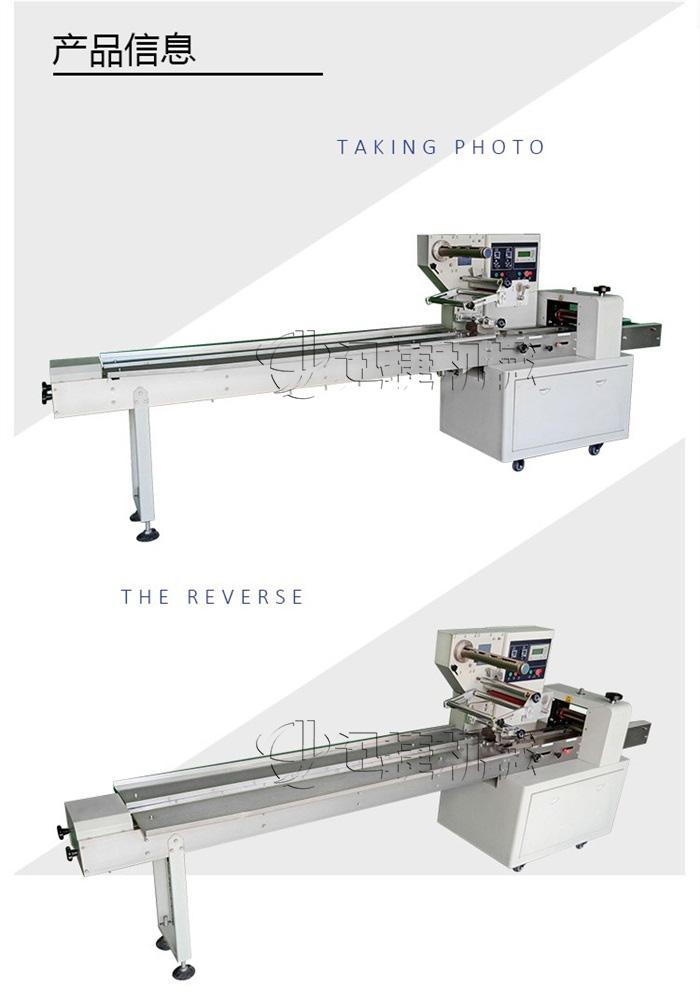 該包裝機為全自動枕式包裝機,適用于各種固型產品的包裝,如食品類(方便面、面包、漢堡、餅干、雪糕、冷凍食品),日用品(肥皂、餐巾紙),五金配件,機械零件(軸承),橡膠制品(輪胎)等產品的枕式包裝。